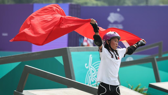 9月27日,在杭州亚运会上滑板女子街式决赛中,本届亚运会中国队年龄最小的选手,13岁的崔宸曦以总分242.62分夺得了金牌。她成为中国亚运史上最年轻的冠军。